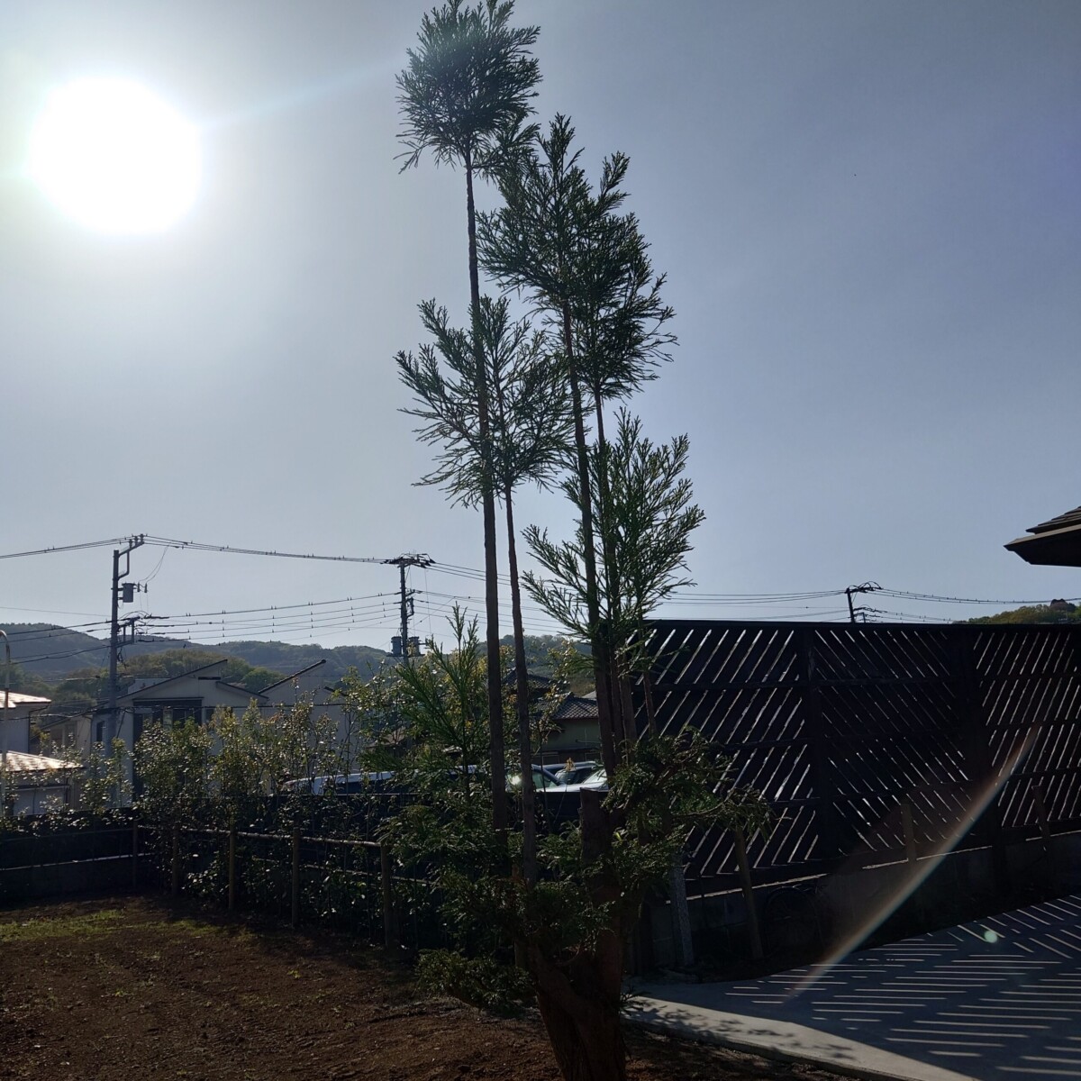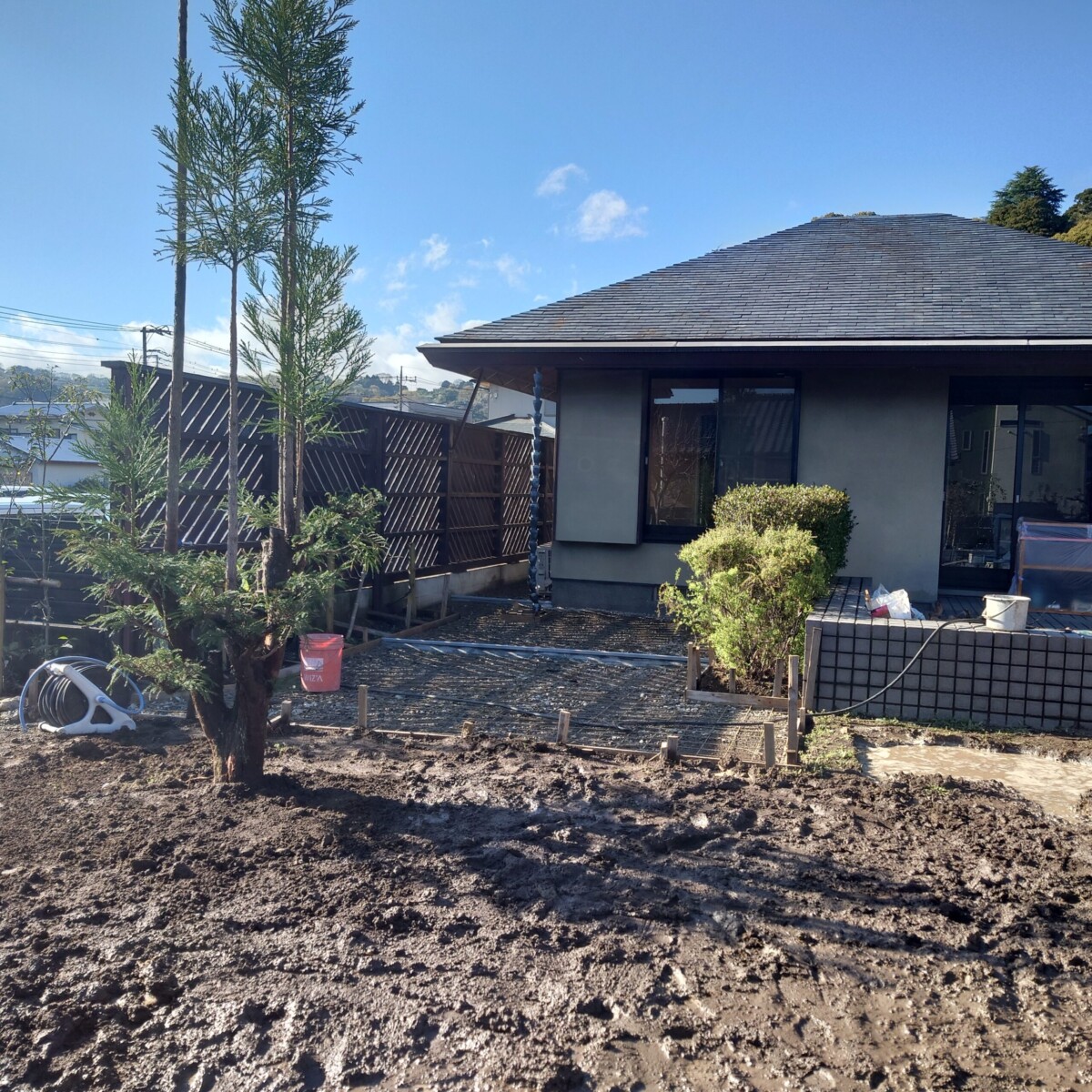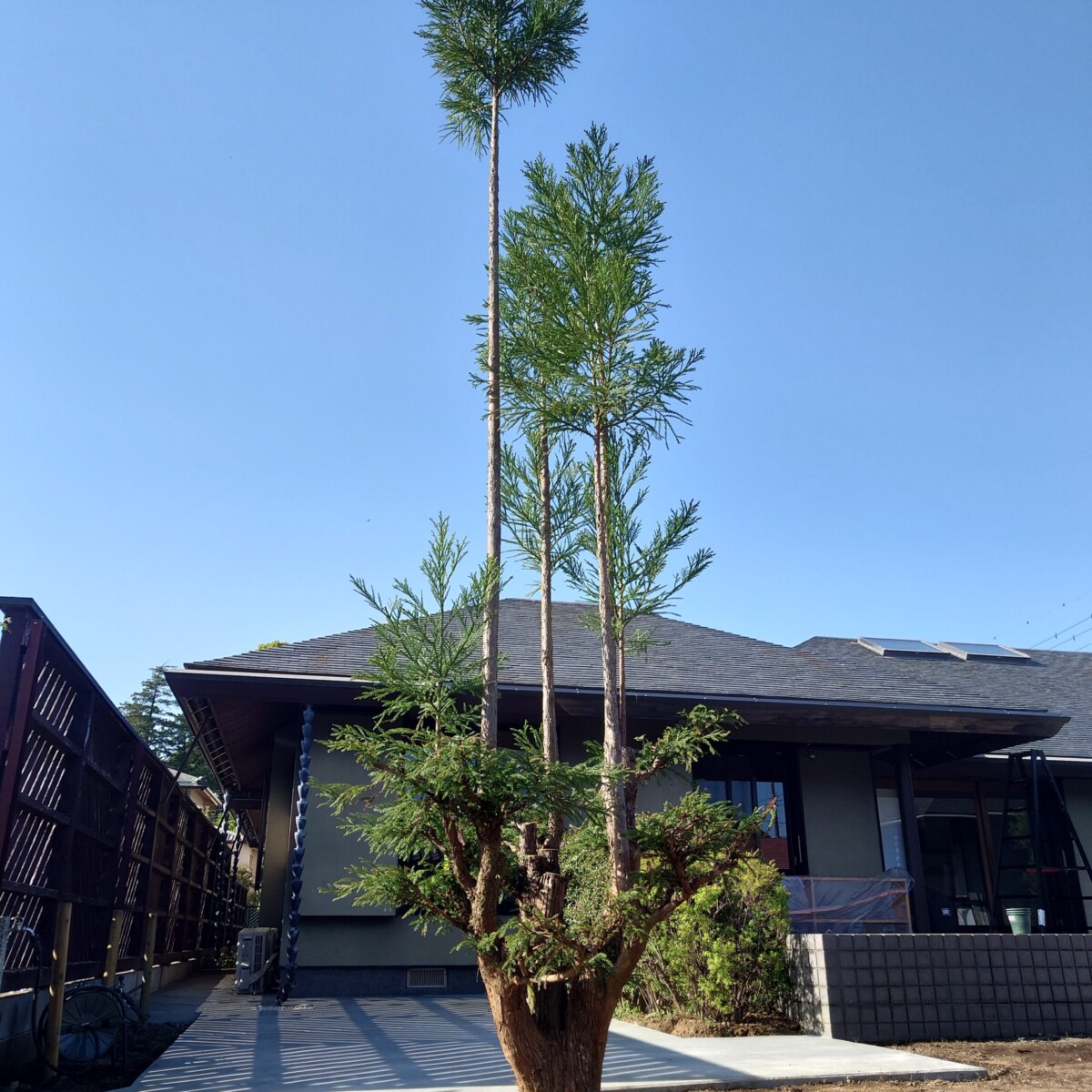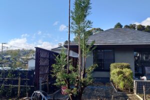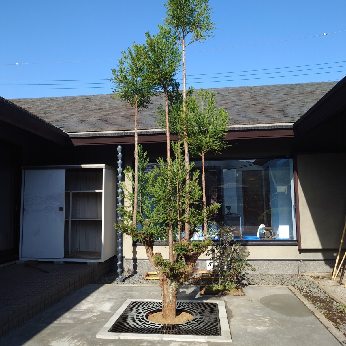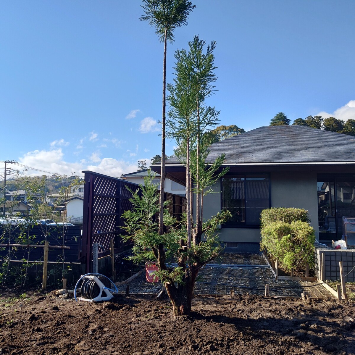 先日、小田原市内で土間コンクリートの増し打ち工と北山台杉、アラカシなどを植栽させていただきました。