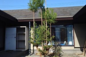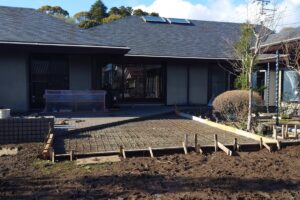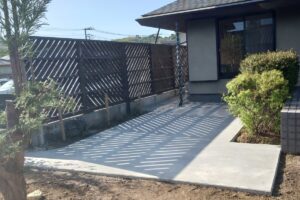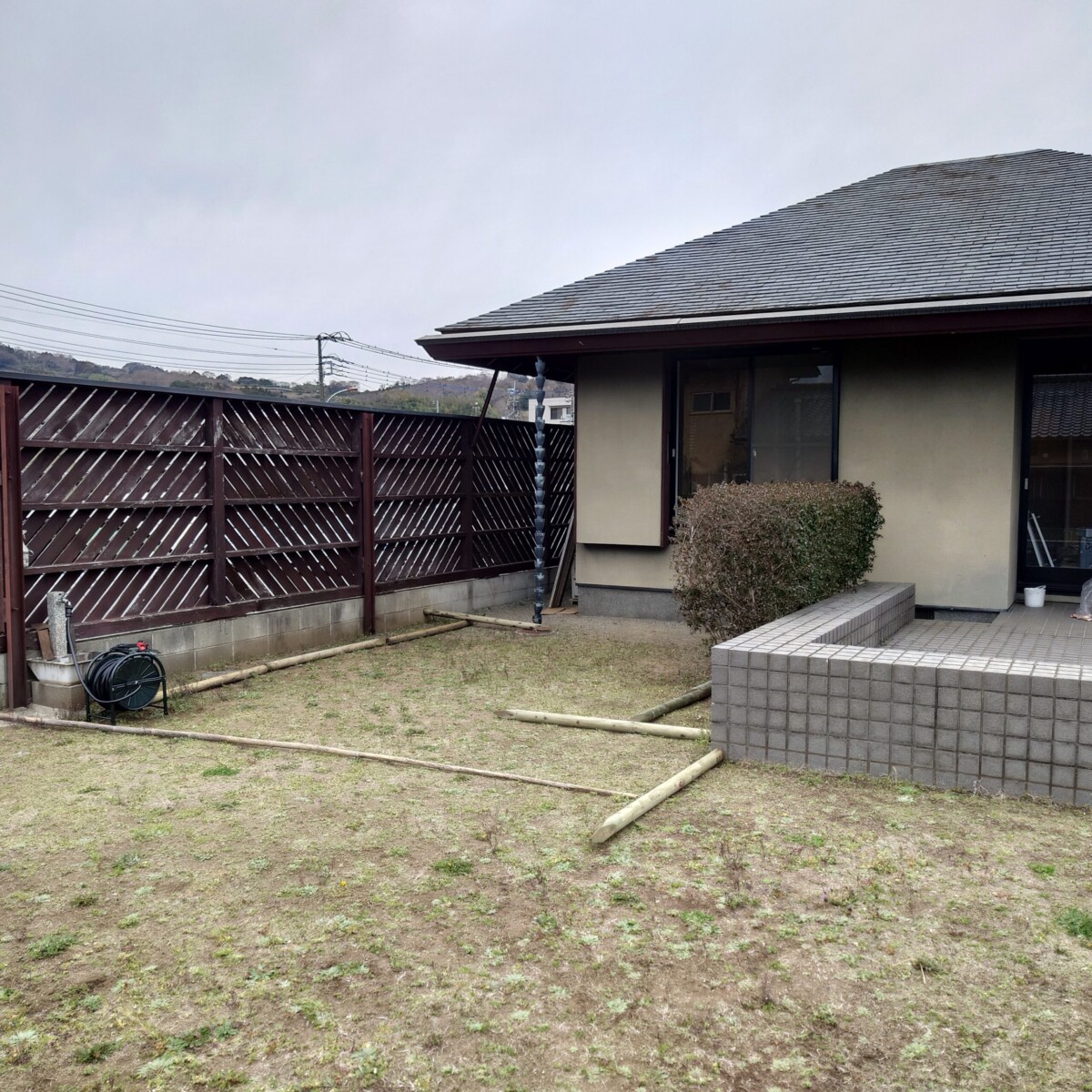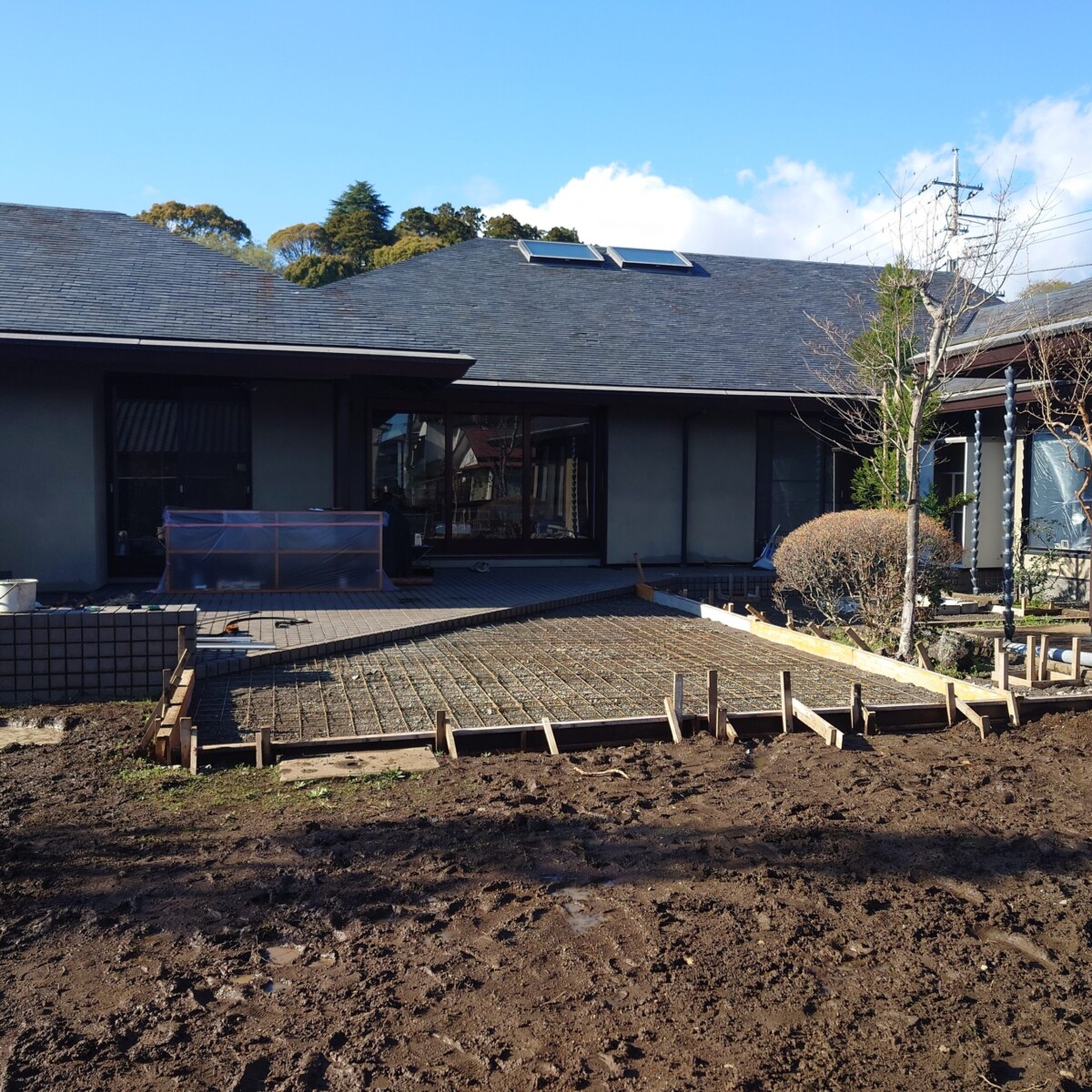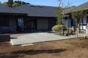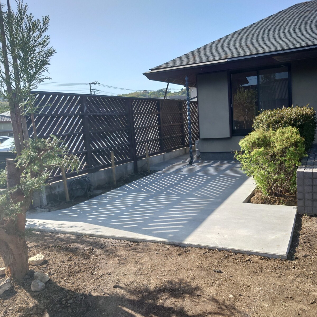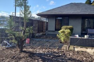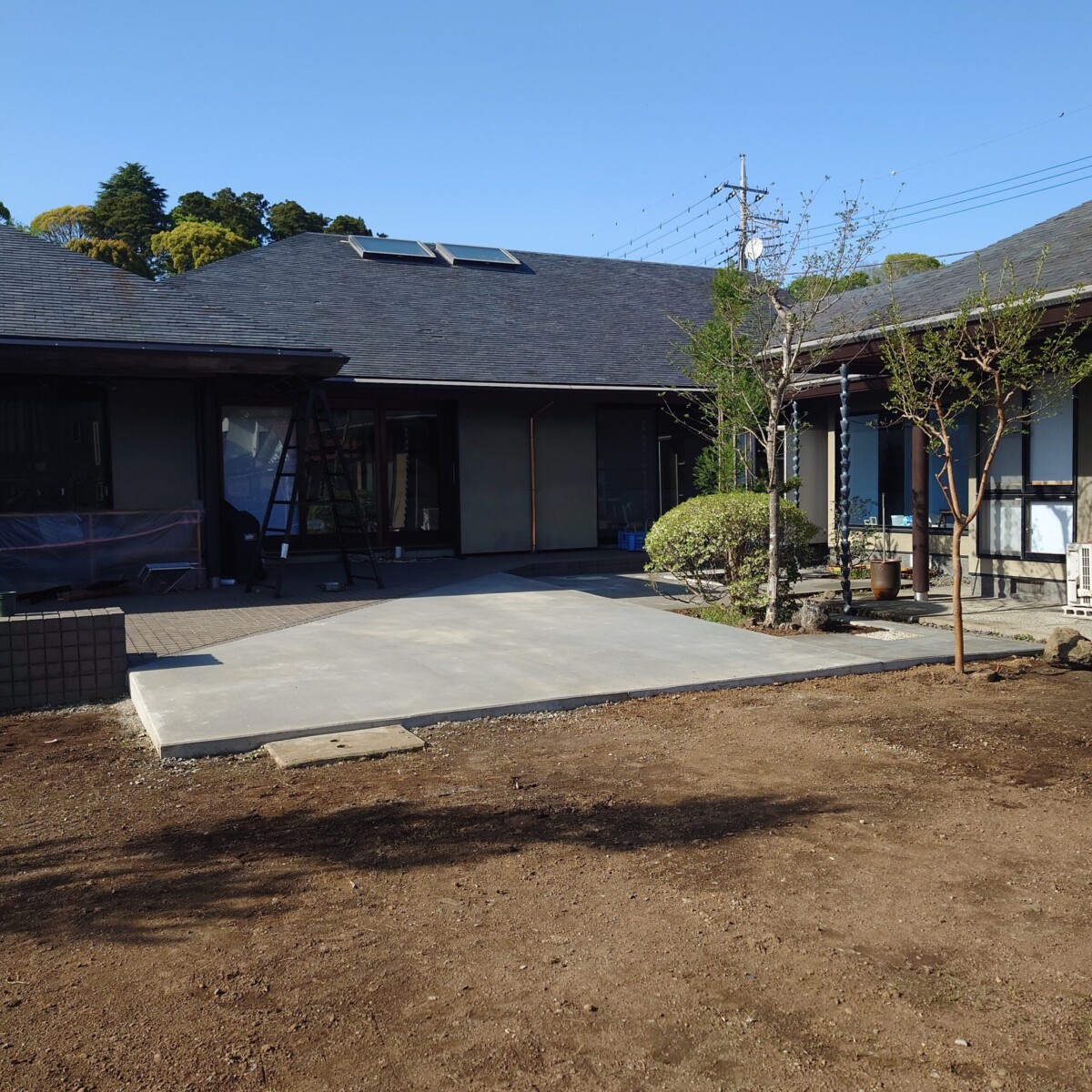 先日、小田原市内で土間コンクリートの増し打ち工と北山台杉、アラカシなどを植栽させていただきました。