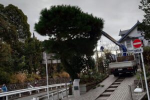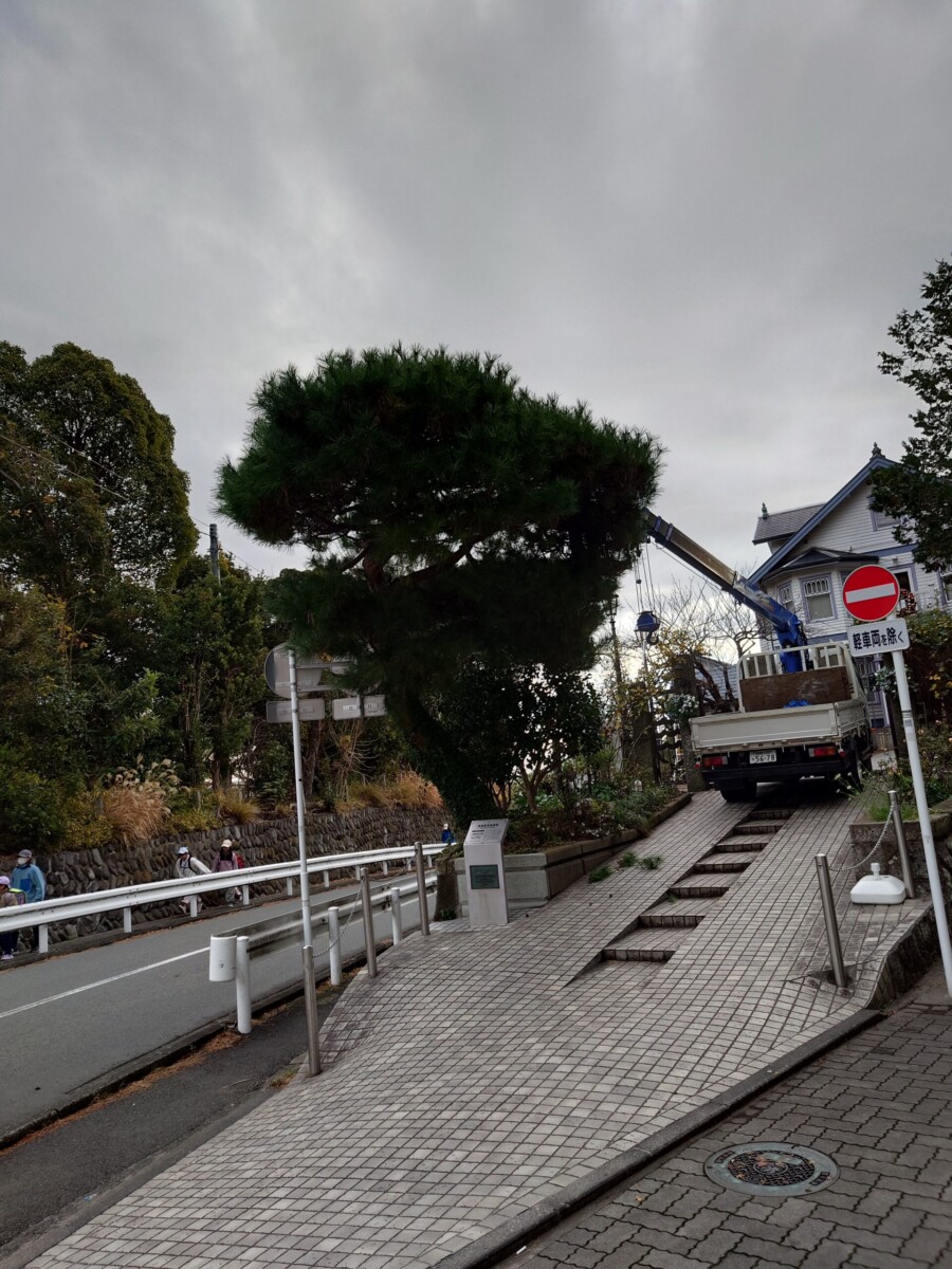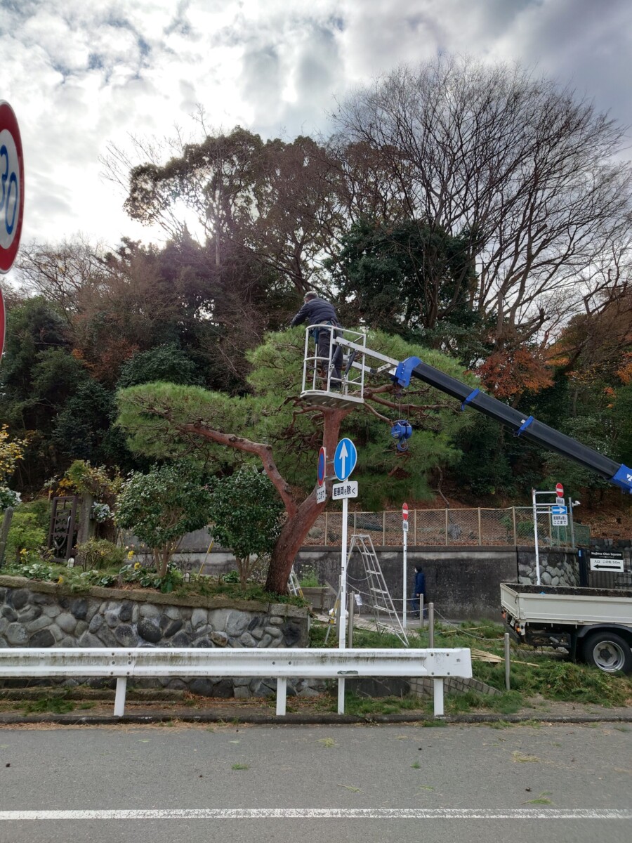 先日、大磯迎賓館様のツル取り作業と赤松の剪定作業に入らさせていただきました。