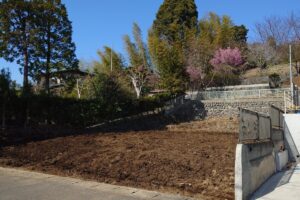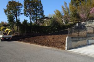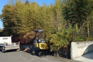 先日、小田原市内で数年間放置放置された土地で不動産会社が売りに出される為、弊社で樹木伐採、抜根工、擁壁解体の施工をさせていただきました。
