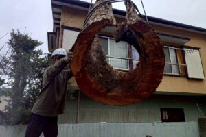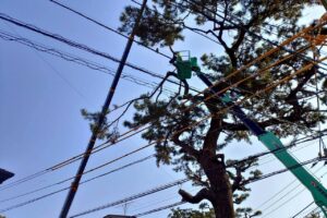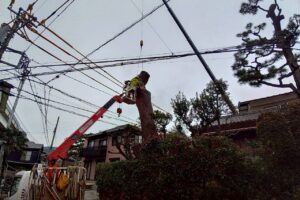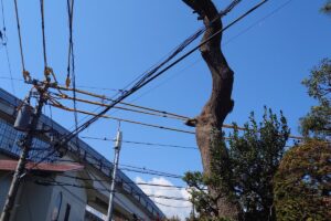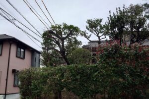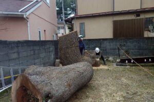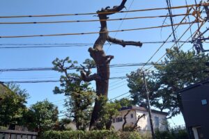 先日、小田原市内で樹高15mほどの高さのクロマツを伐採させていただきました。