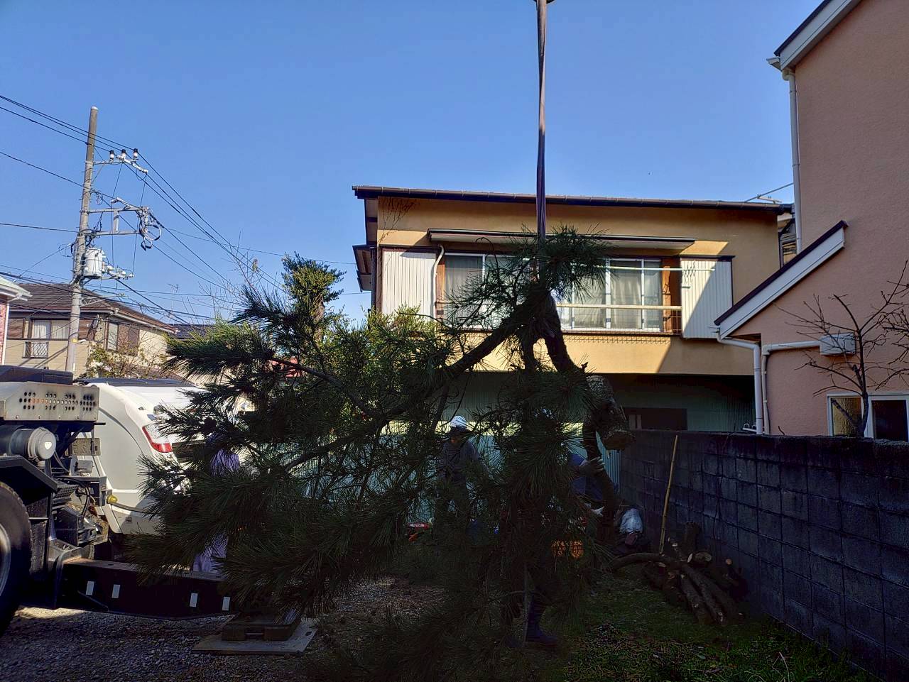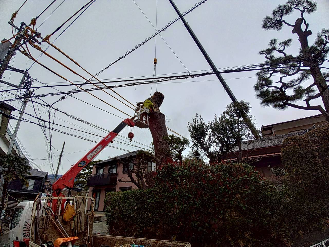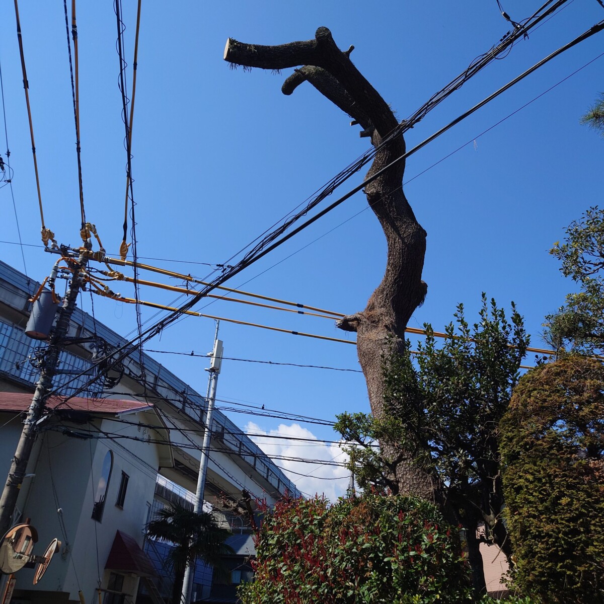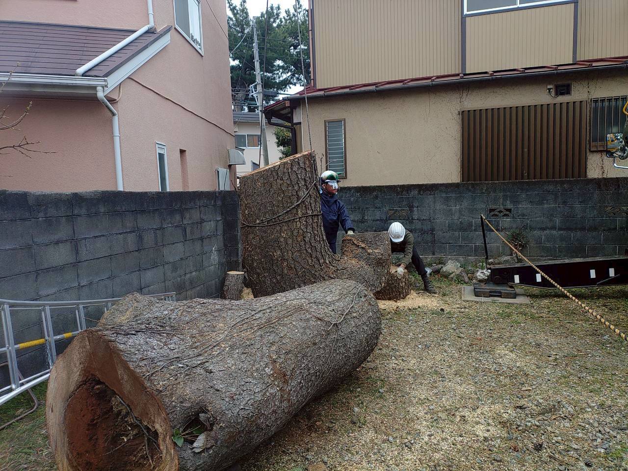 先日、小田原市内で樹高15mほどの高さのクロマツを伐採させていただきました。