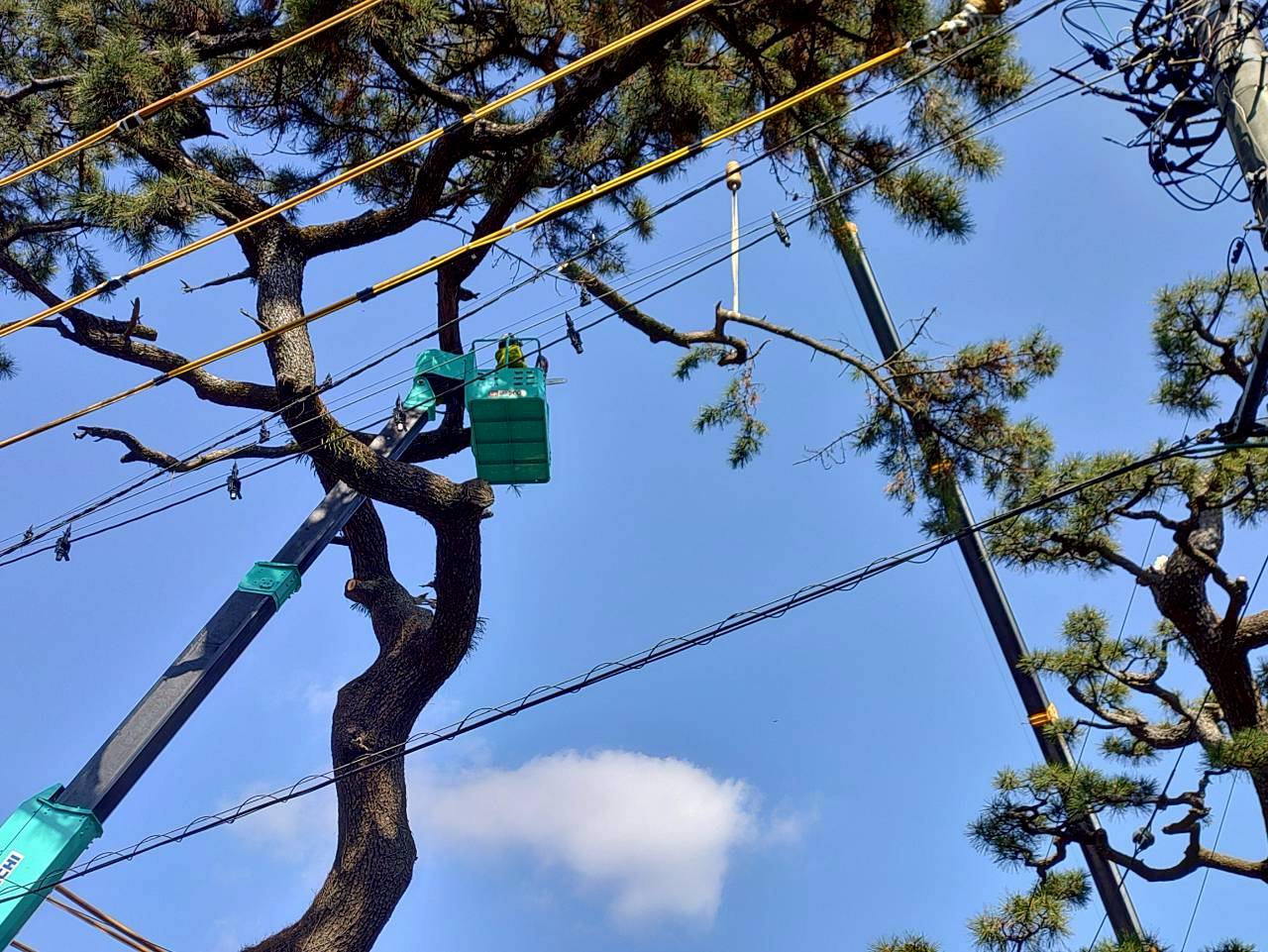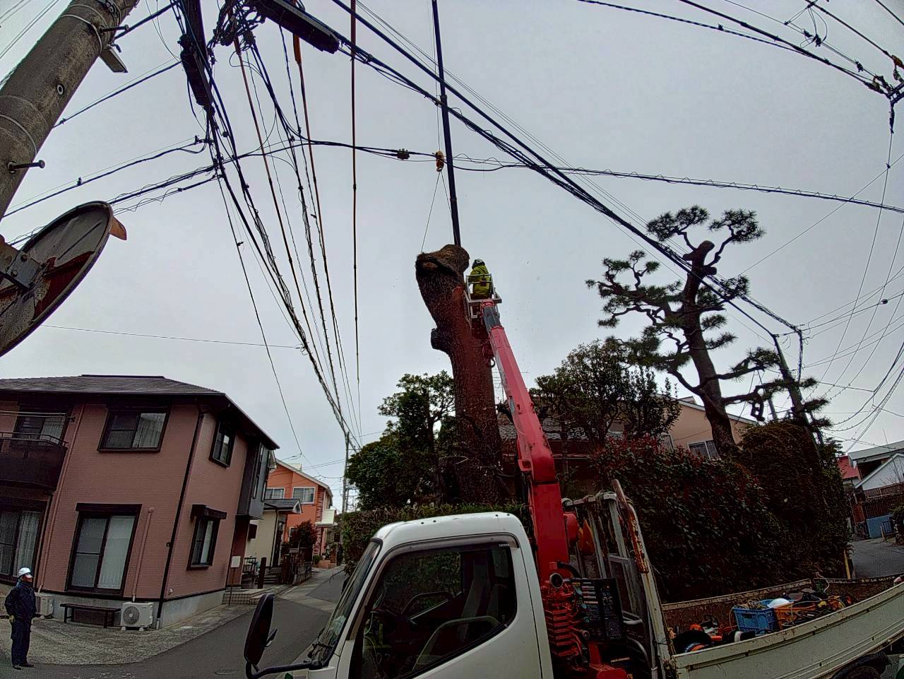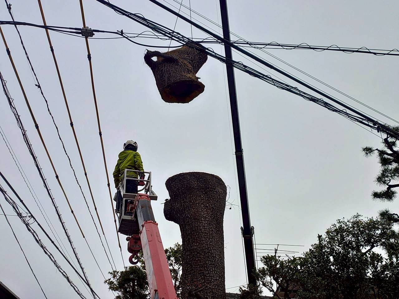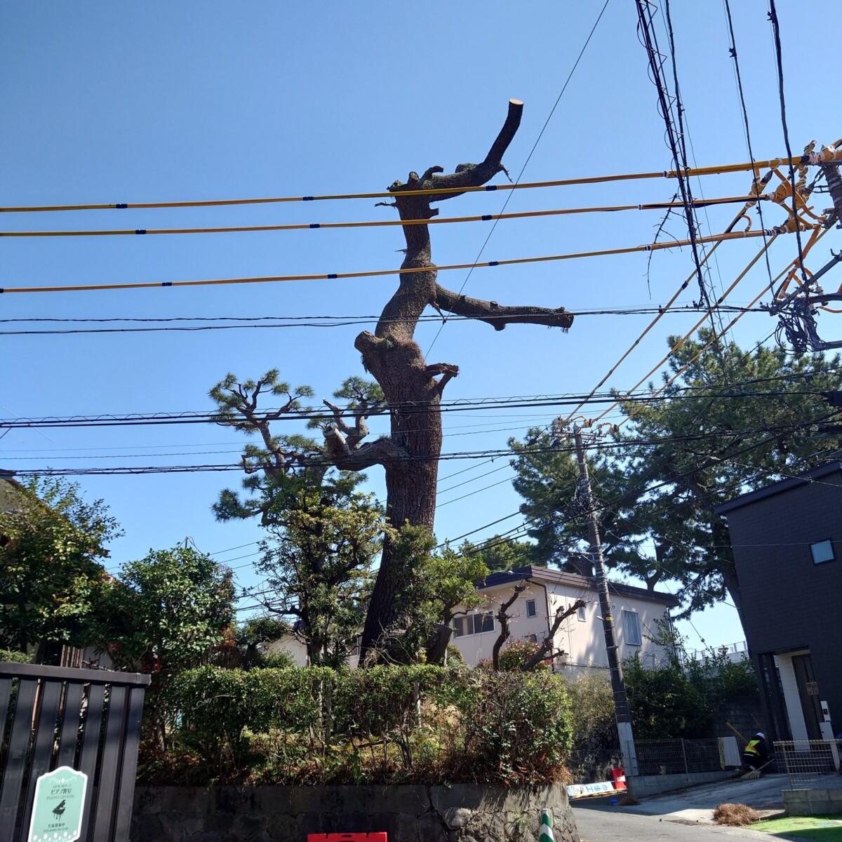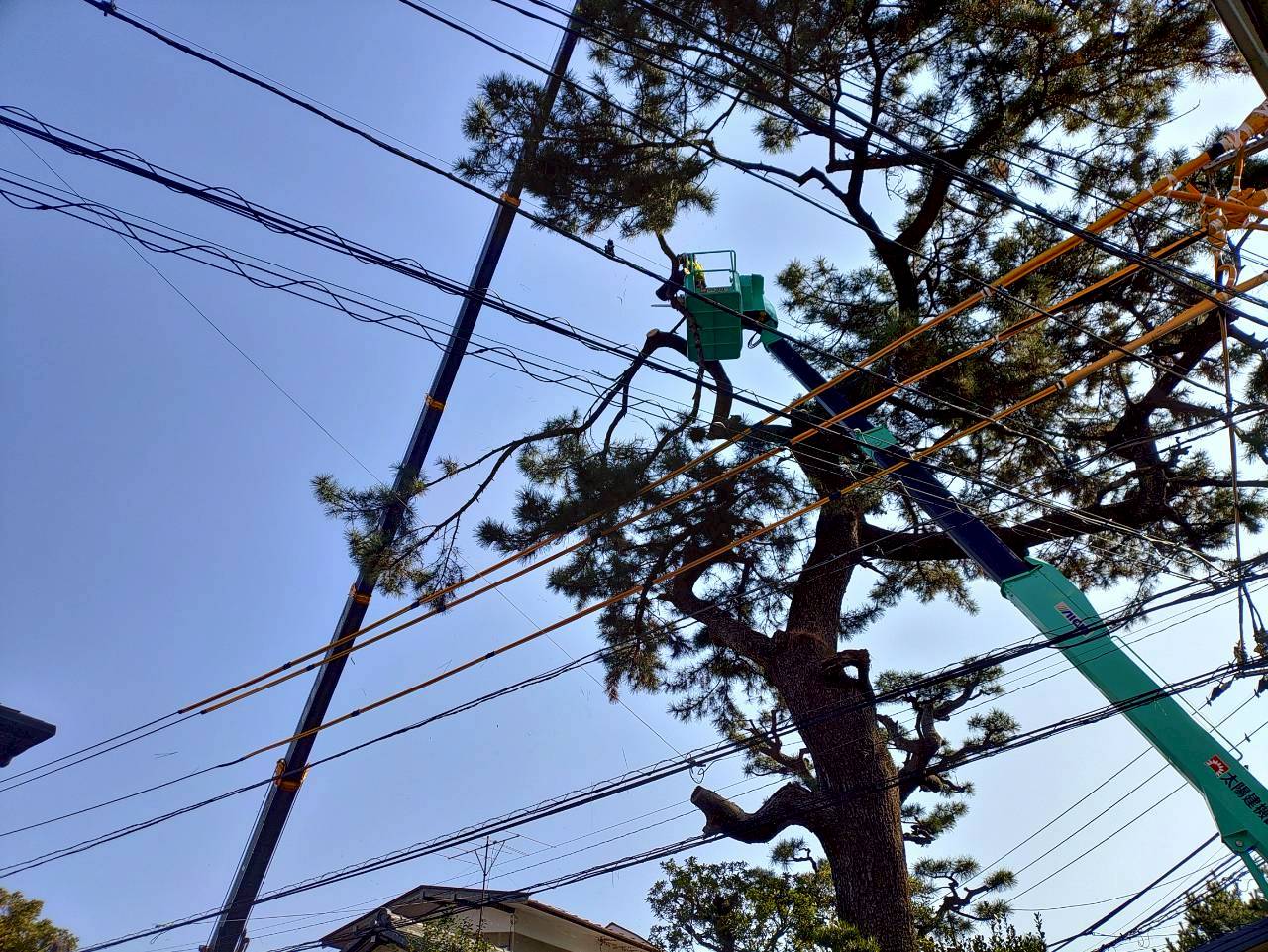先日、小田原市内で樹高15mほどの高さのクロマツを伐採させていただきました。